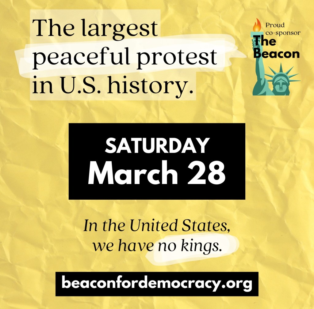 Find your nearest March 28 Protest location & time at NoKings.org